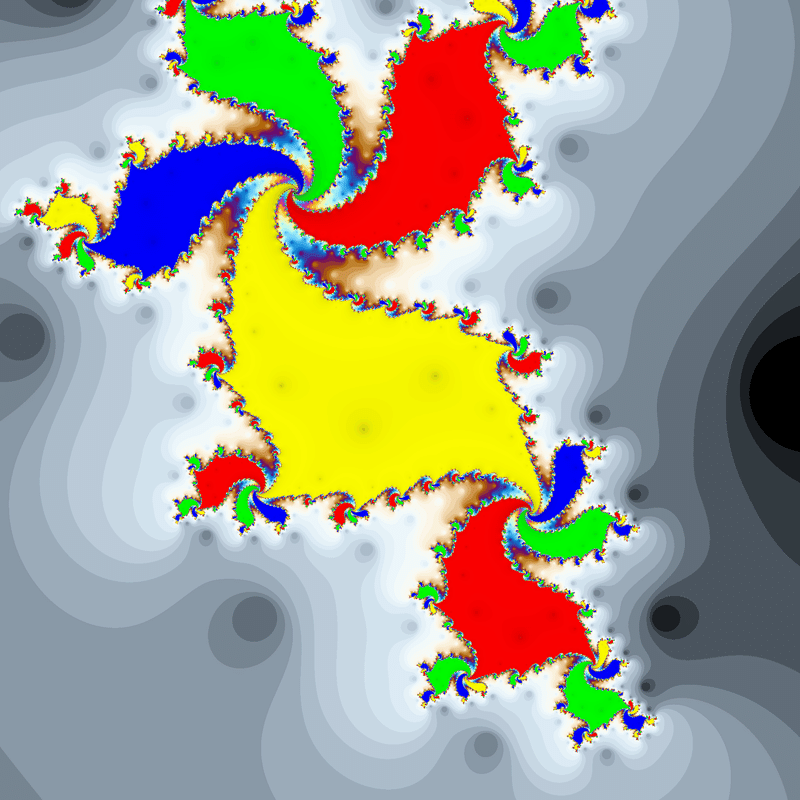 余談ですが、これまでに開催してきた高周期ジュリア集合選手権で扱ってきた関数の内、変な領域の出現が確認されているものは以下の2つです。