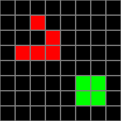 死んだセルが3つの生きたセルに接していたら、生きたセルに変わる