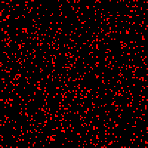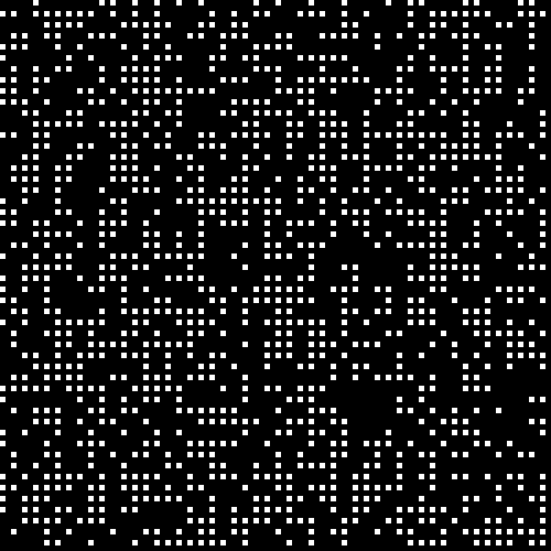 500×500くらいのランダムな初期状態だと20~30回に1回くらいの確率で出現します。