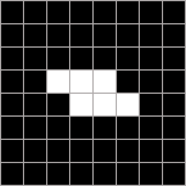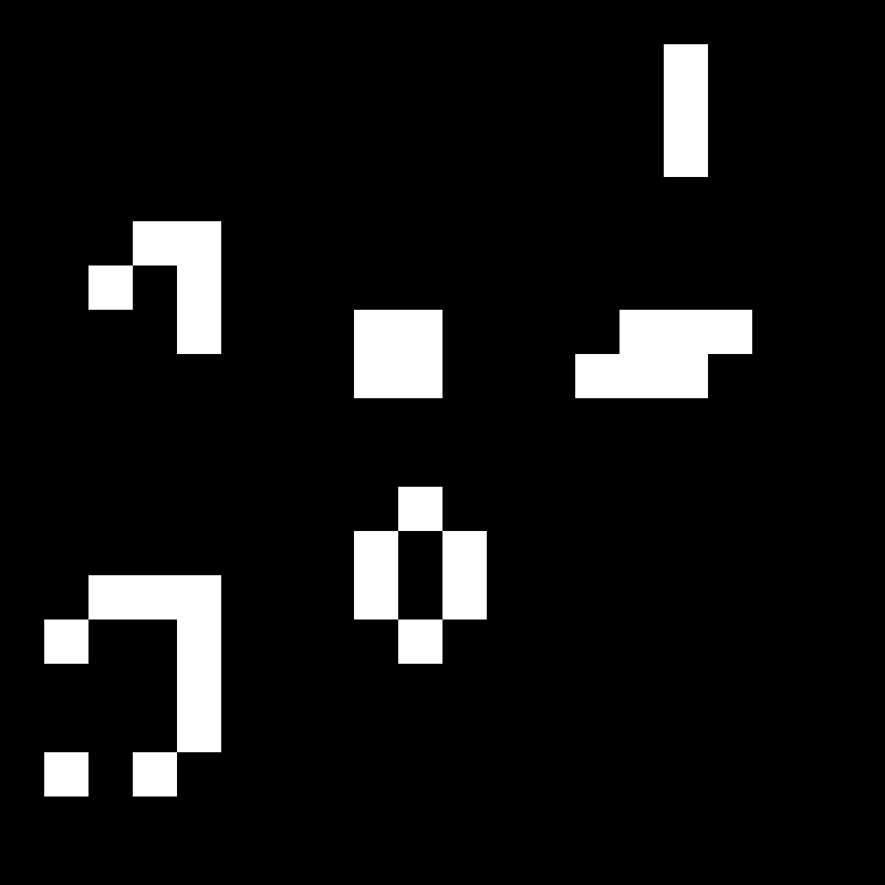 しかし、生まれたて・死にかけのセルが混ざった初期状態だと普通のライフゲームでは起きないような現象が起き、先程のリンク先ではそのようなパターンがいくつか紹介されています。(自力では何も見つけられませんでした)