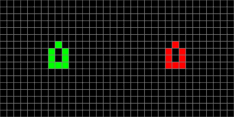 あえて人工生命体シミュレーターとして例えるなら、敵対する2種類の生物が存在するルール、といったとこでしょうか。