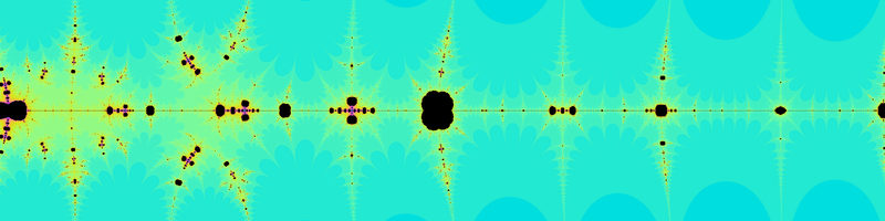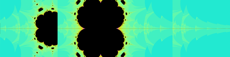 そして、$${z=x+iy}$$に対して$${\text{mod}(x,2)+iy}$$を$${\frac{1-\text{cos}(\pi z)}{2}}$$や$${\frac{1-e^{i\pi z}}{2}}$$の代わりに使うことで、今までと同様にフラクタル図形を生み出すことができます。