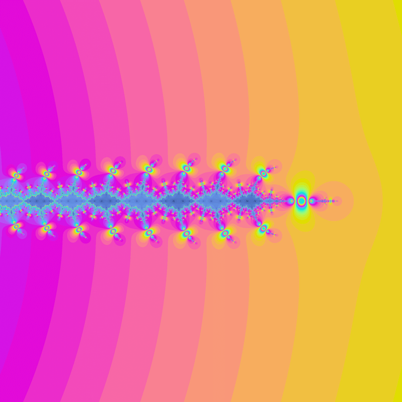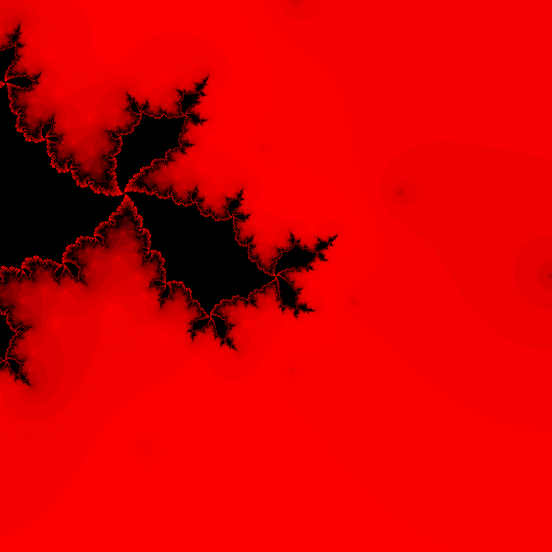 拡大してみると、いかにもマンデルブロ集合っぽい形になっていることがわかります。