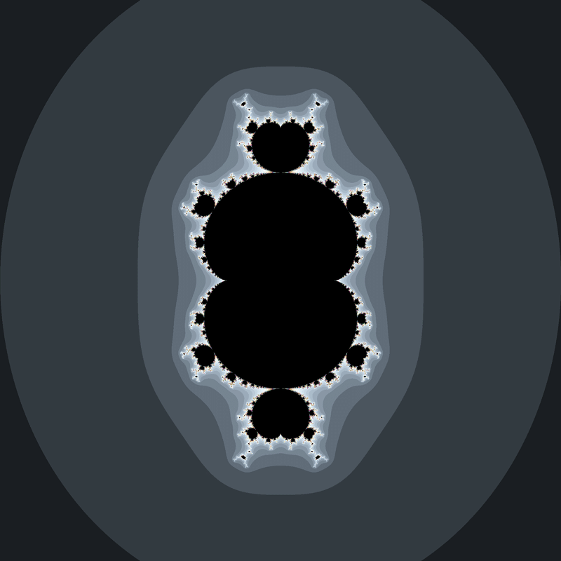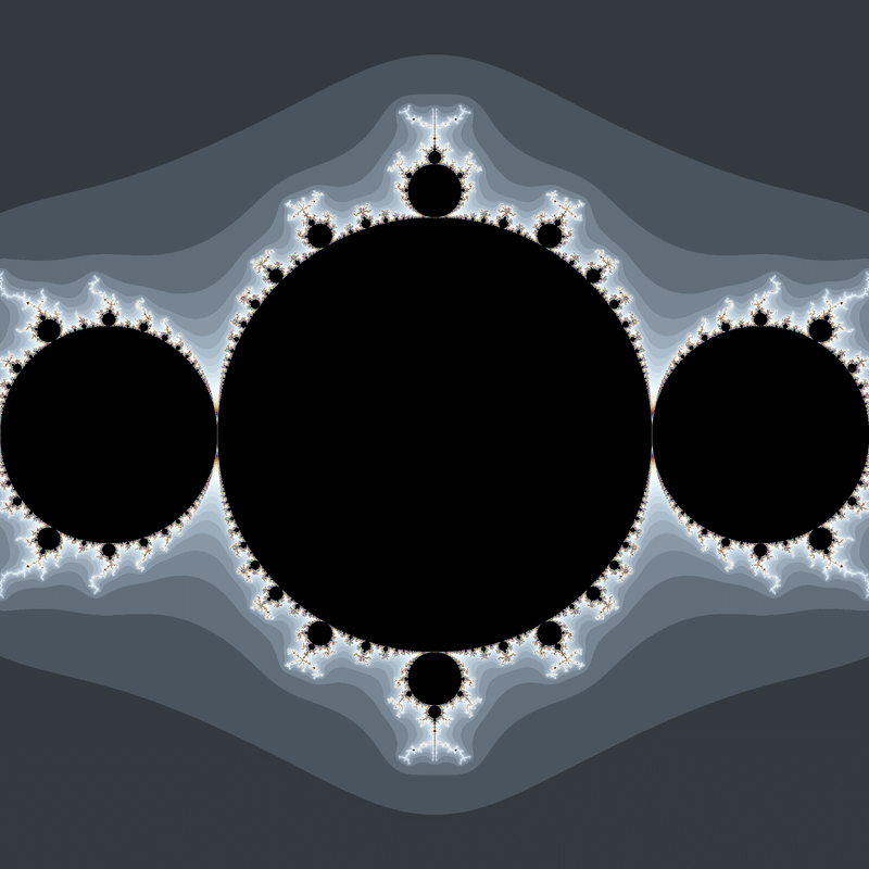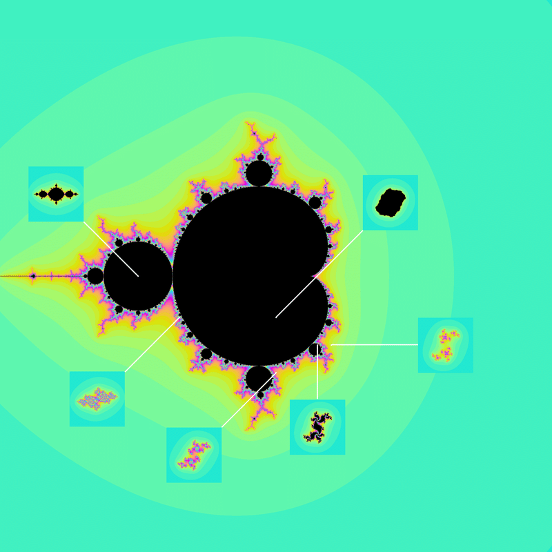 なお、正式にはマンデルブロ集合といえばこの「$${0}$$を初期値とする$${z^2+c}$$のマンデルブロ集合」のみを指し、初期値や関数の種類を変えたものはマンデルブロ集合とは呼ばないらしいです。
