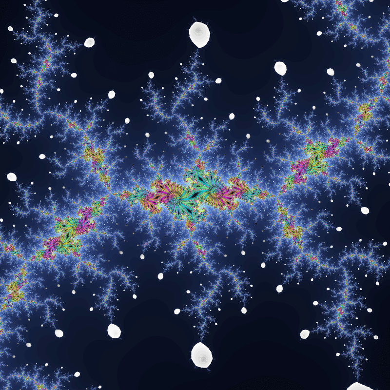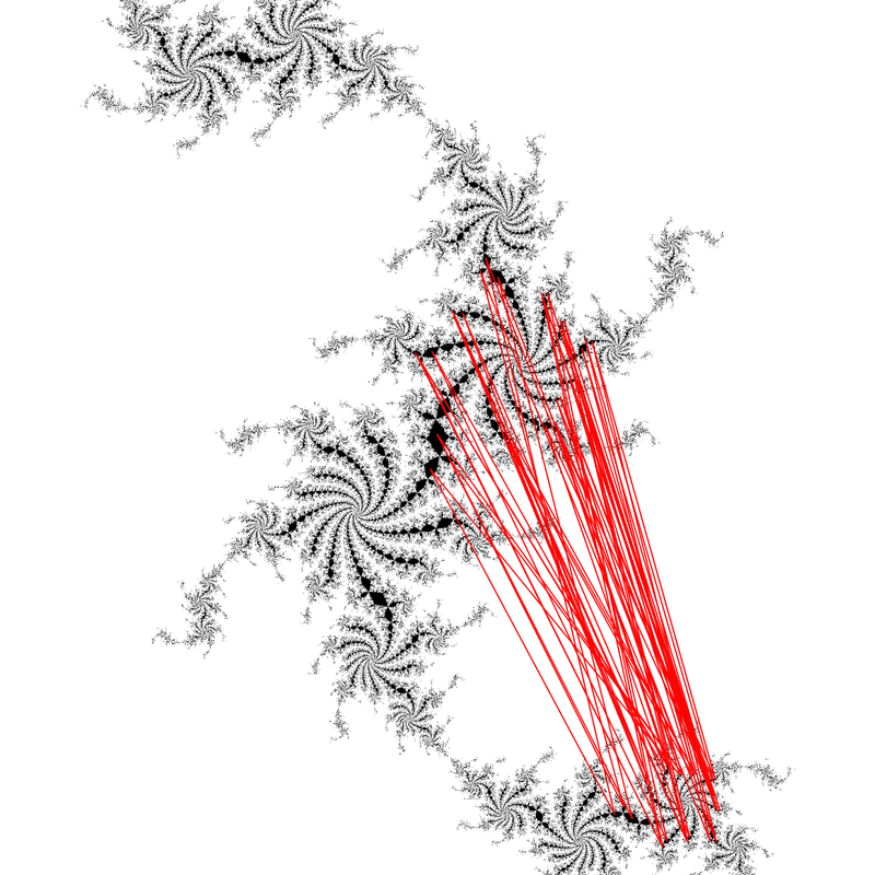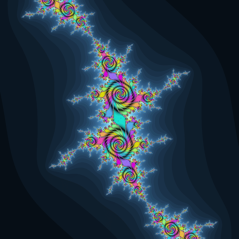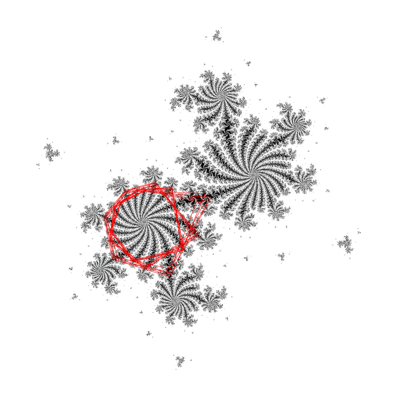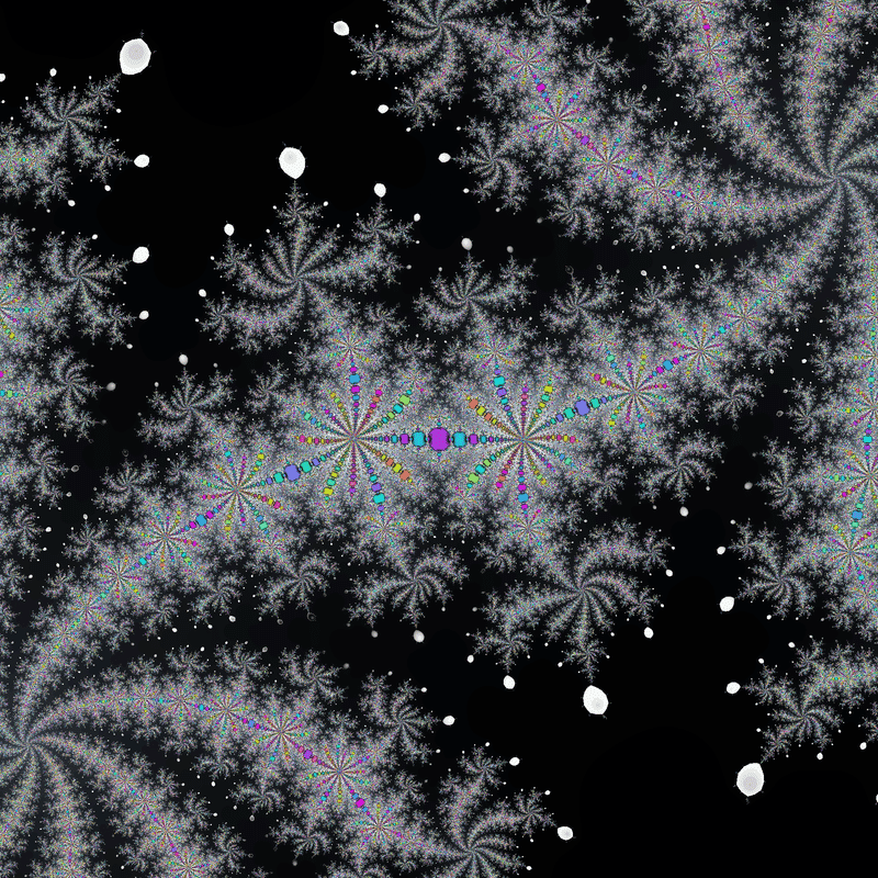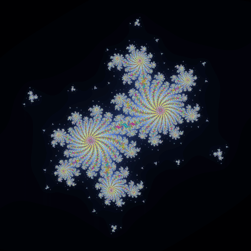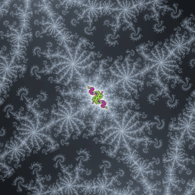 この企画(の元になった調査)を始めたのは「周期の長いジュリア集合は美しいのが多い」という経験則があったからなのですが、実際に調べてみたところ数百周期のオーダーになると構造が微細・複雑すぎたりして綺麗に描画しにくいことがわかりました。