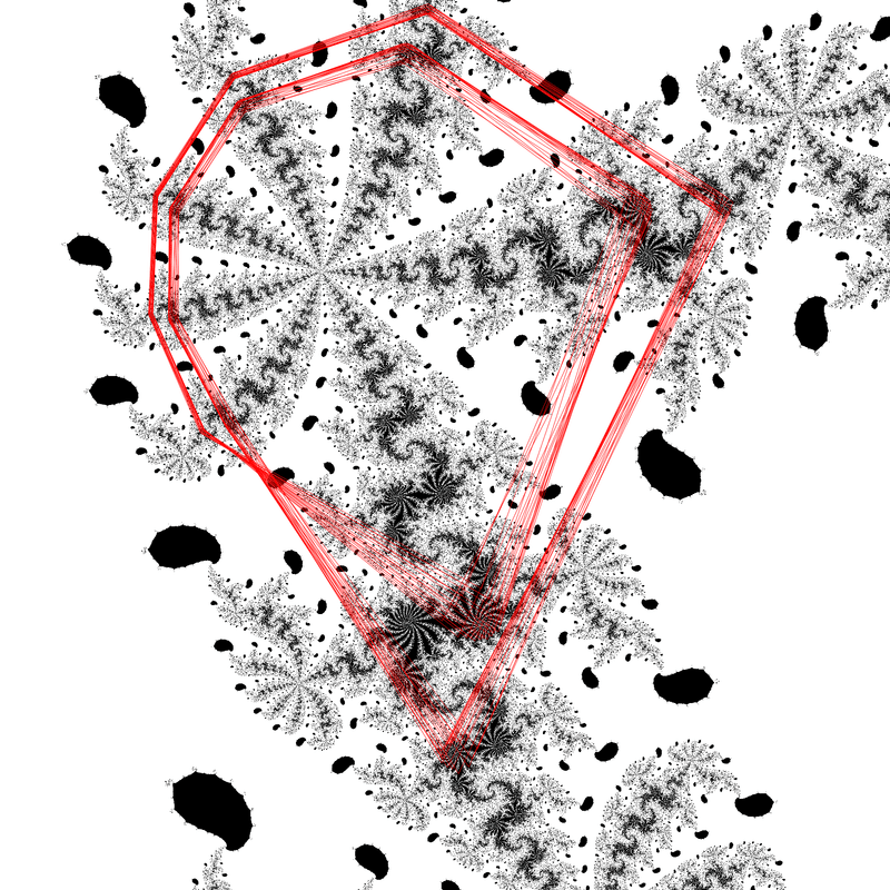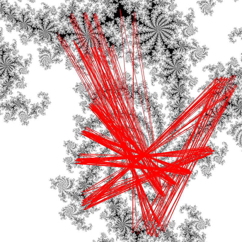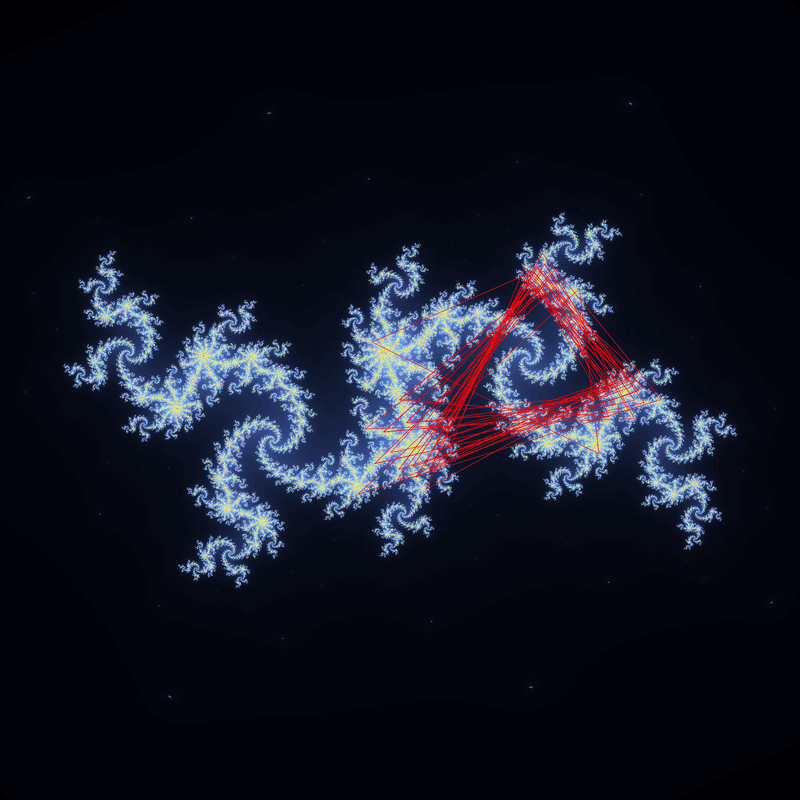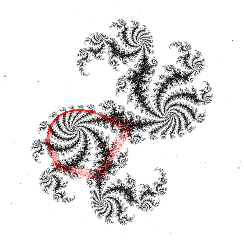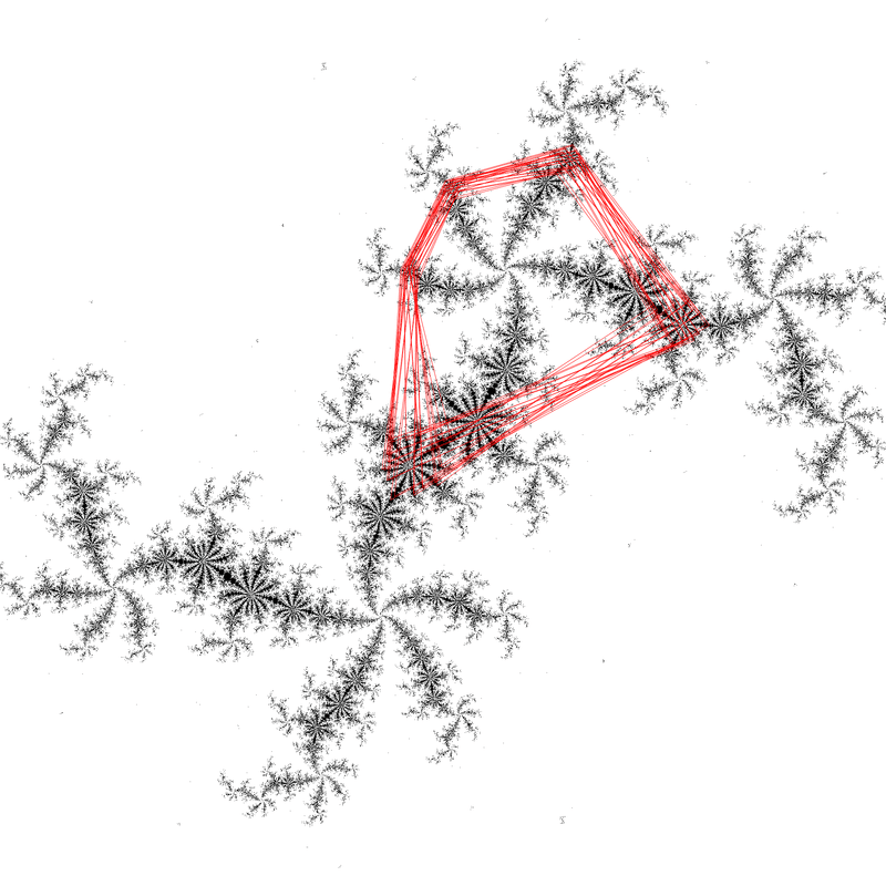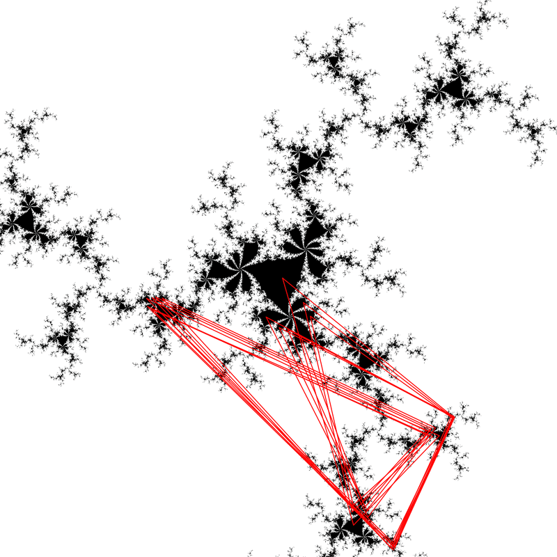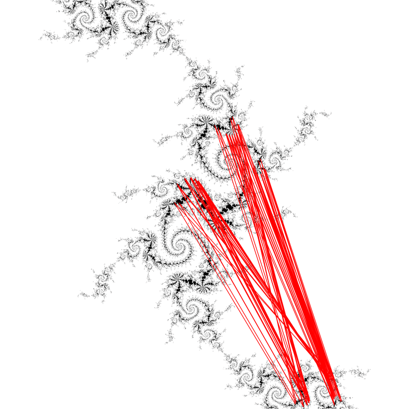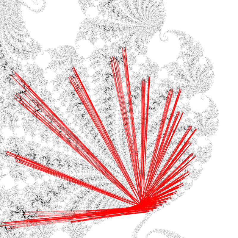 この企画(の元になった調査)を始めたのは「周期の長いジュリア集合は美しいのが多い」という経験則があったからなのですが、実際に調べてみたところ数百周期のオーダーになると構造が微細・複雑すぎたりして綺麗に描画しにくいことがわかりました。