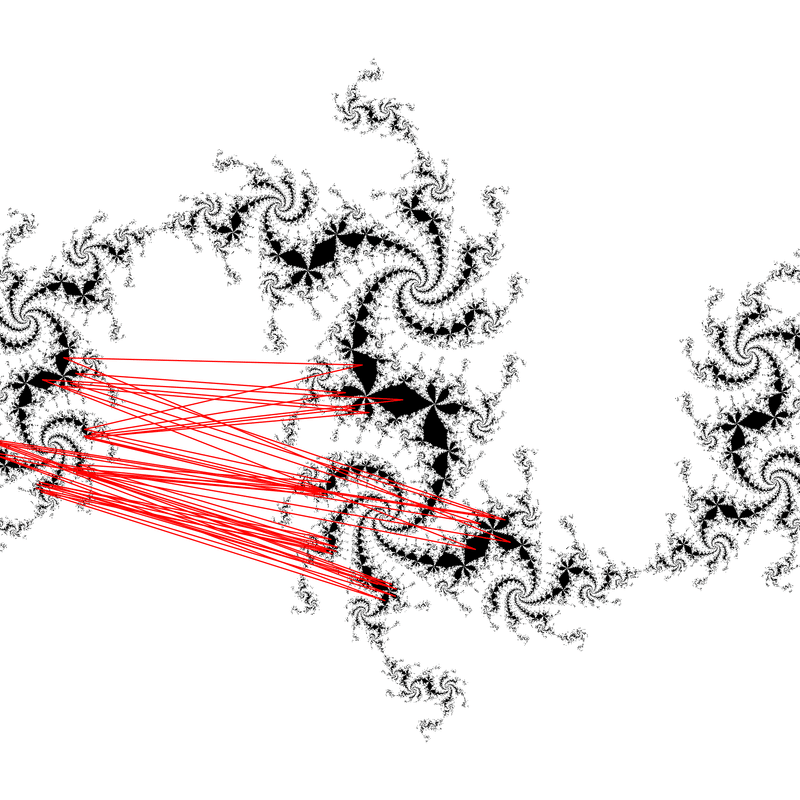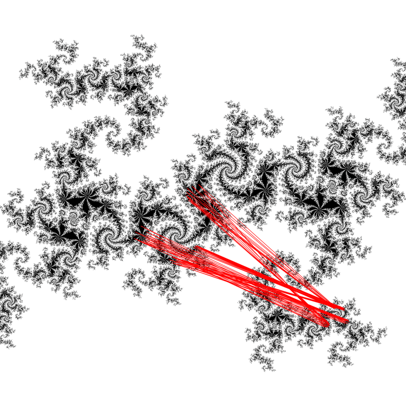 このようにジュリア集合とマンデルブロ集合は定義が似ているのですが、定義以外にも意外な接点があります。