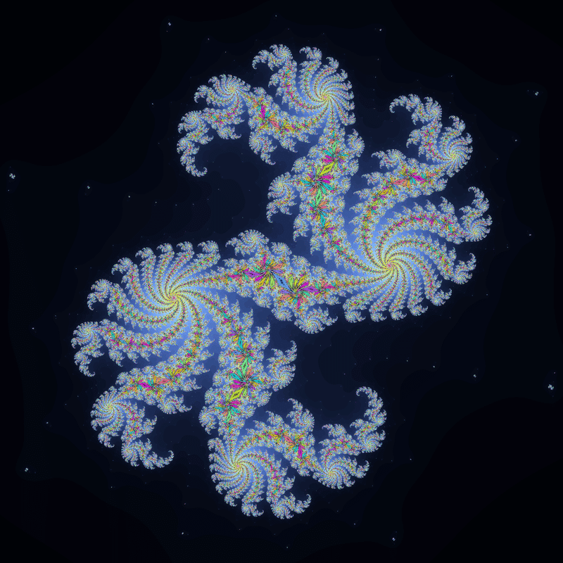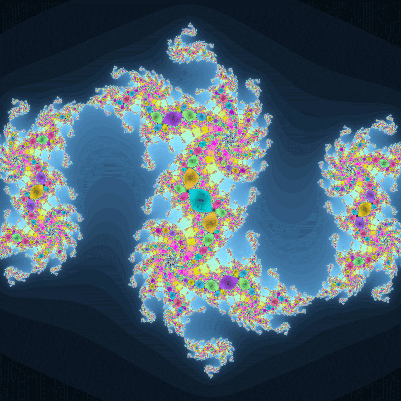 例えばこの$${z^3+0.58+0.6i}$$のジュリア集合は、「レベルが3、周期因子が3、5、4」というように表現することができます。