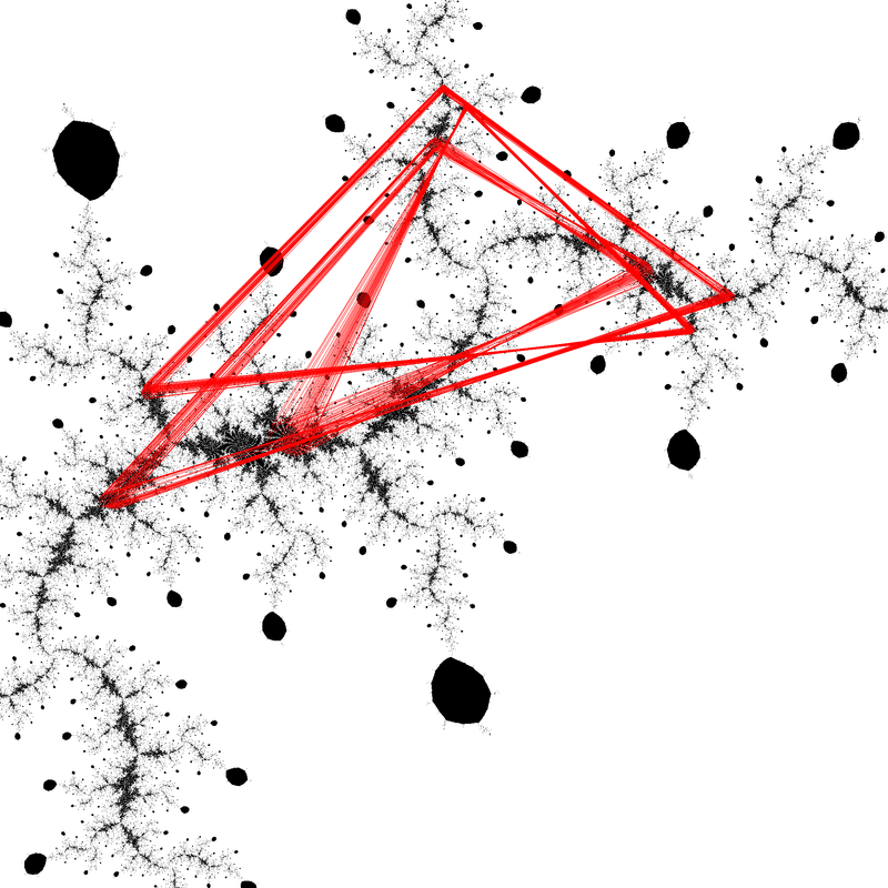 これまでの5種目とは異なり、$${(z^2+c)^2+d}$$では線ですら繋がっていない「マジの飛び地」が存在するようです。