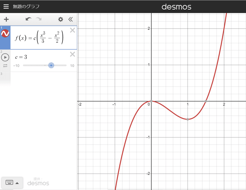 $${c\left(\frac{z^3}{3}-\frac{z^2}{2}\right)}$$という関数は、今までのものとは違い臨界点が2個あります。