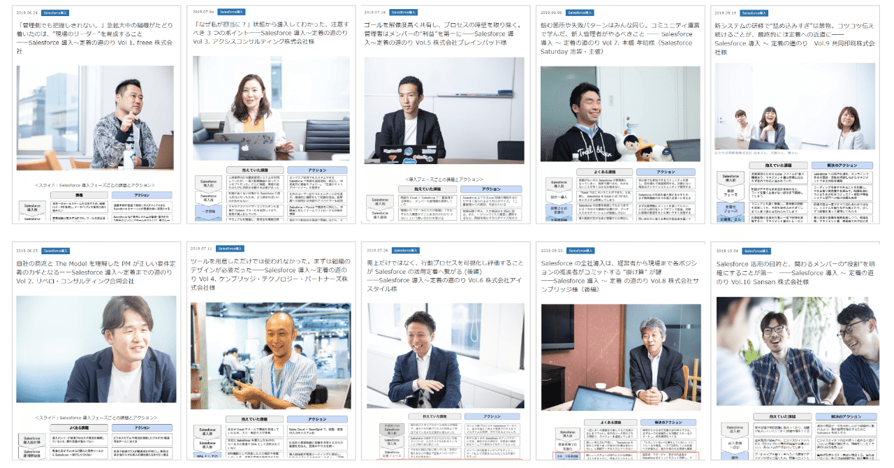 この半年、私が事業責任者を務める Teachme Biz for Salesforce のプロモーションの一環で、 10 社の Salesforce 導入・定着インタビューを行いました(一連の記事はこちら)。