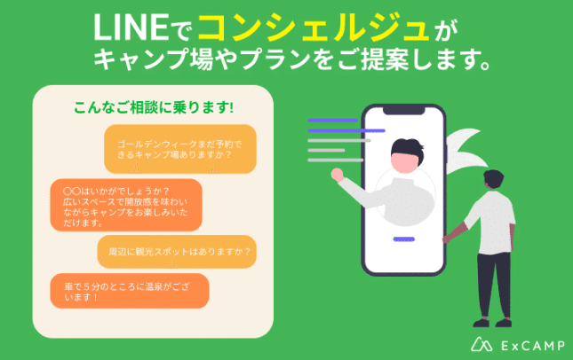 LINEで「ExCAMP」を友だち登録するだけで利用可能です。