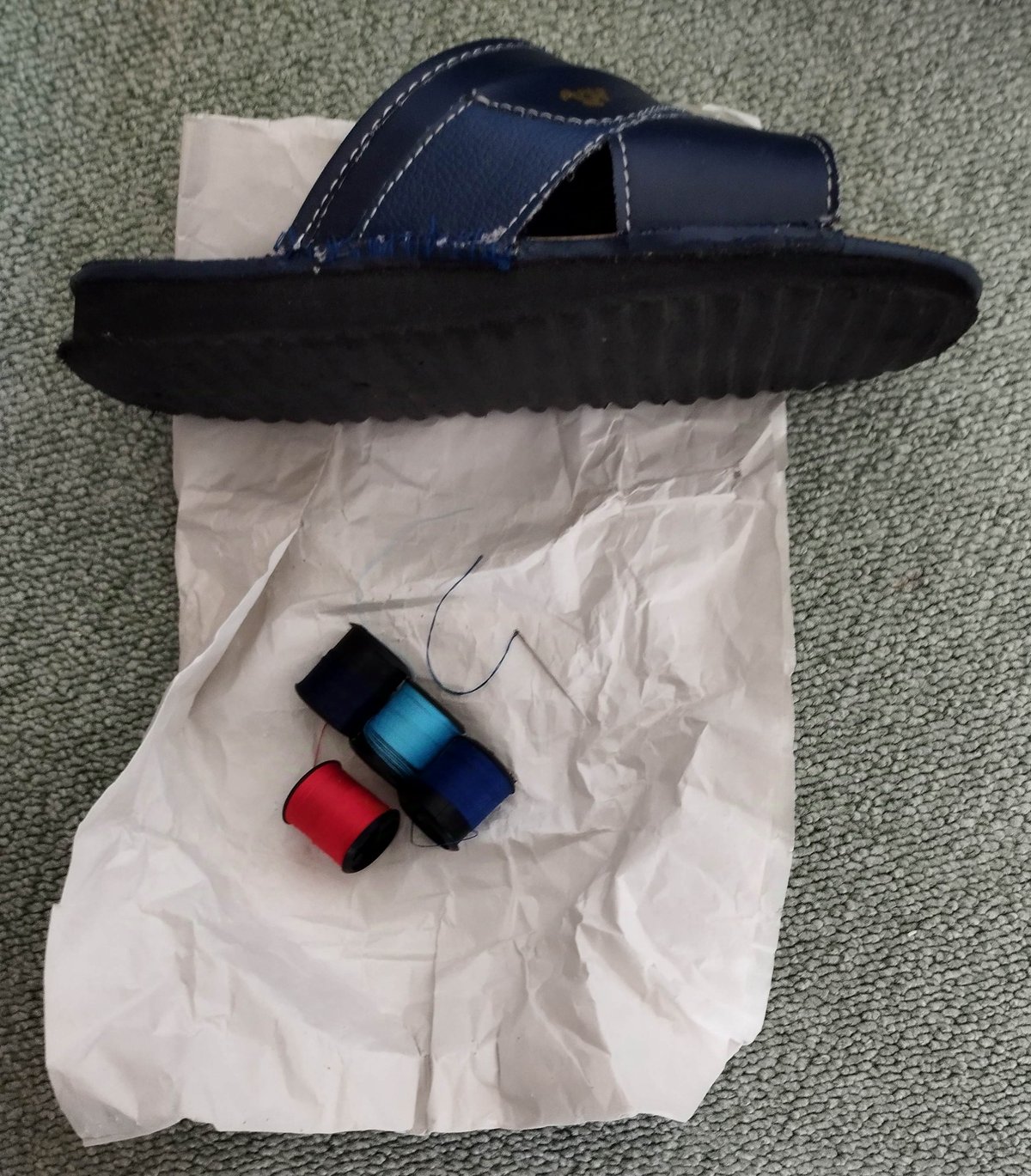 サンダルのカバーの端が切れた。・・・とブログに書いたが拡大などはxが得意、ここに引き継いだ