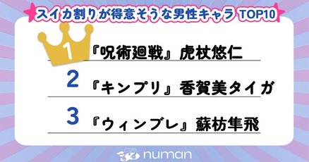 1位は『呪術』虎杖!スイカ割りキャラが得意そうな男性キャラTOP10『キンプリ』香賀美タイガ『銀魂』銀時『ウィンブレ』蘇枋『まほやく』カインetc