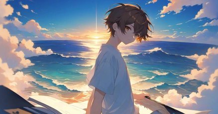 第50投稿目【AI画像生成】海と光と白銀の髪の物語!