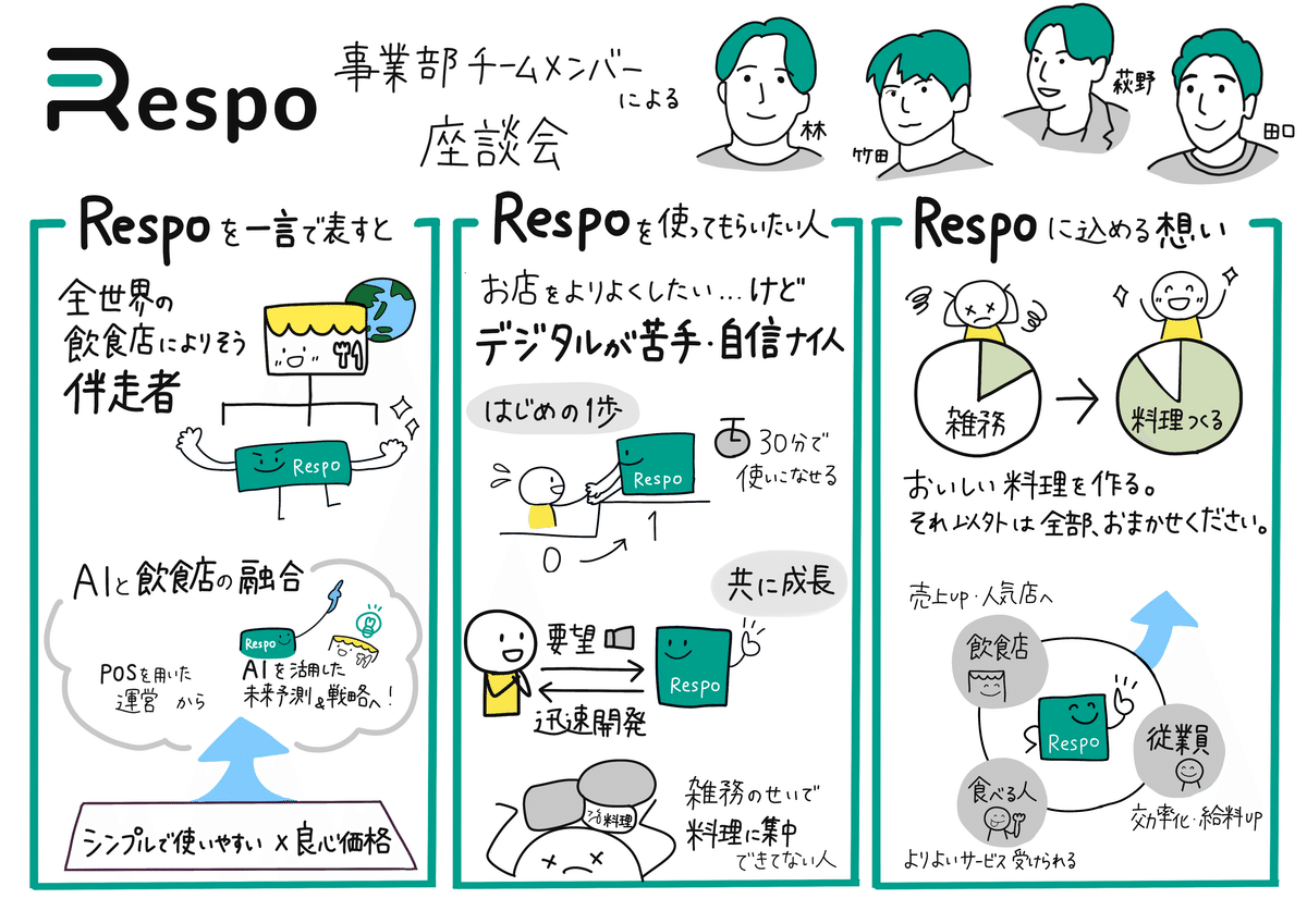 本来noteで紹介する予定はなかったのですが、Respoへの愛と想いがギュッと詰まった座談会だったので、「Respo初心者」の私が心動かされた箇所をピックアップしてご紹介しようと思います。