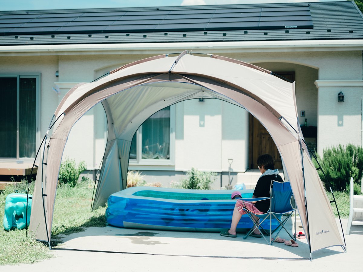 昨年、タープが壊れた。「今日でこの夏のプールはおしまいだな」そう感じた日に、タープの支柱が壊れ、布が裂けた。元々、家の倉庫にほぼ新品のまま眠っていたタープ。父に確認したら僕が幼稚園児くらいの時にバーベキューをするために買ったと言っていた。ホントかどうか怪しいけど、勝手にバトンを受け取った気になって、タープ(のようなもの)を買ってきた。
