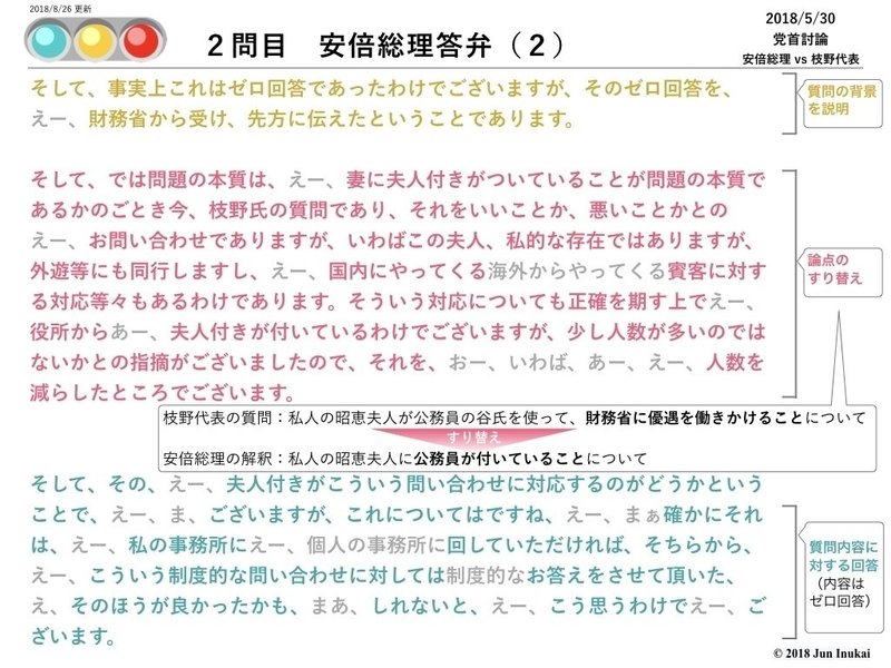 冒頭から中盤まで赤信号(=質問は加計に移ったのに森友の話を続ける)。