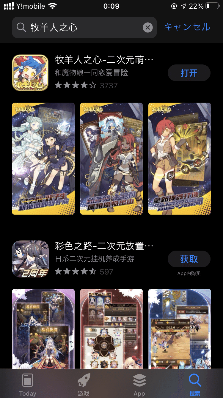 作成した後は、牧羊人之心で検索してアプリをダウンロードします。