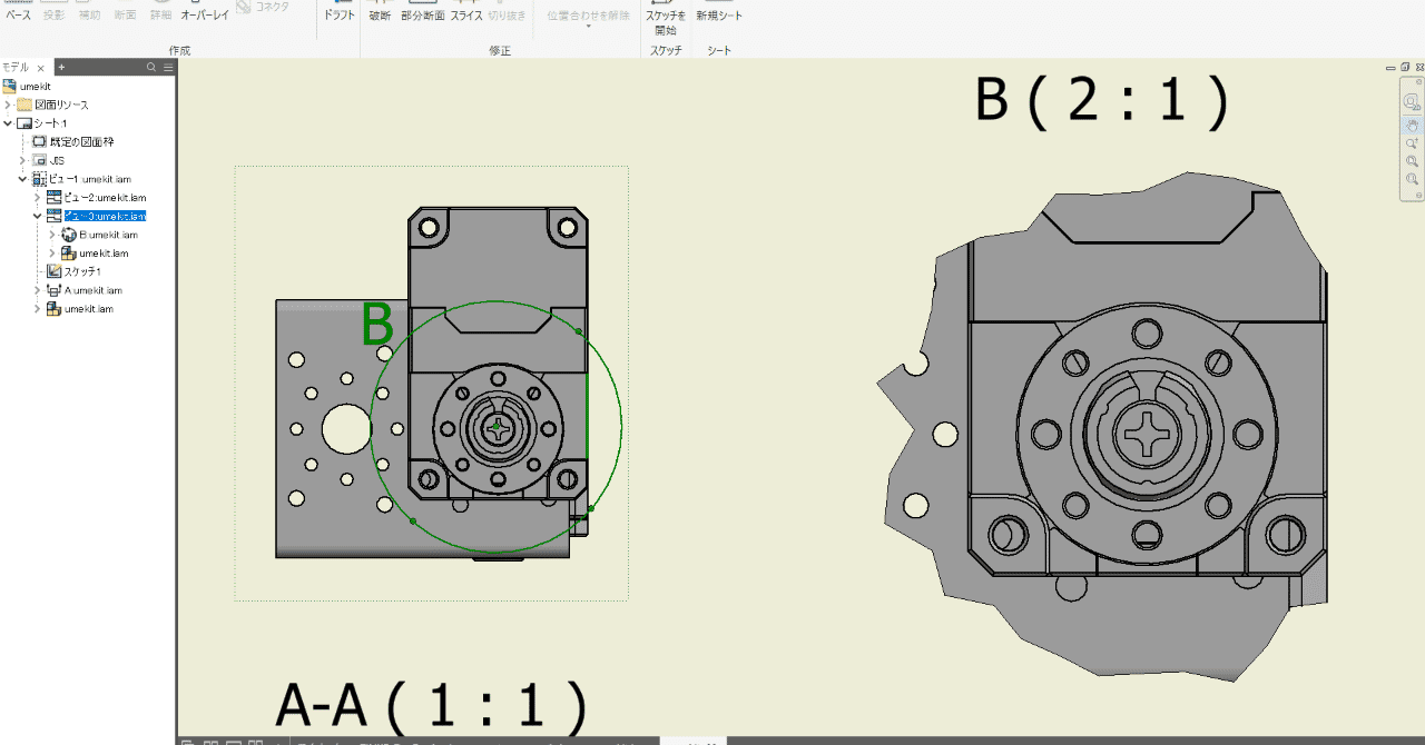【Inventor2018】2D図面で詳細を表示する方法【Autodesk】