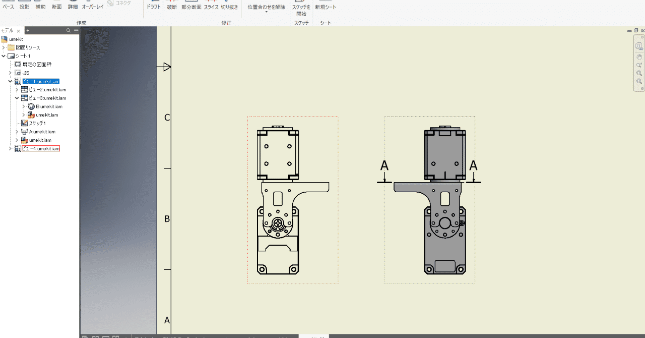 【Inventor2018】2D図面に別々で配置したビューを整列させる方法【Autodesk】
