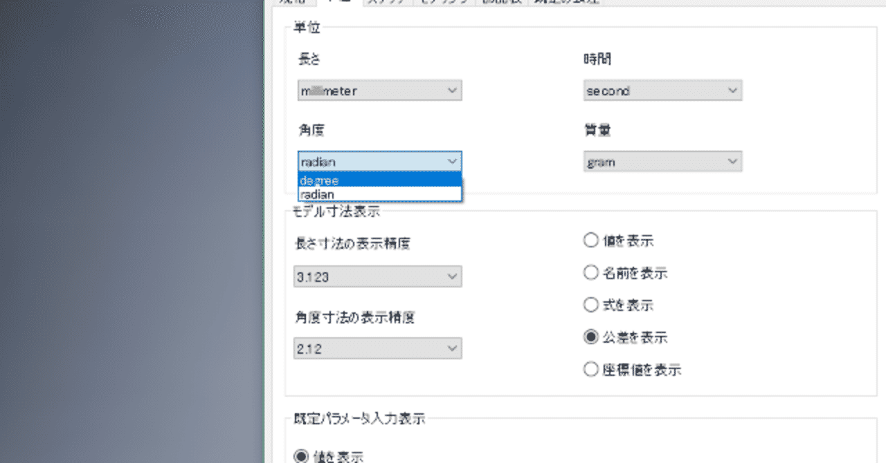 Inventor2018で、角度をラジアンからディグリーに変更する方法