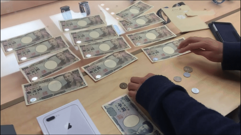 お金を丁寧に並べ始めた金佑さん。