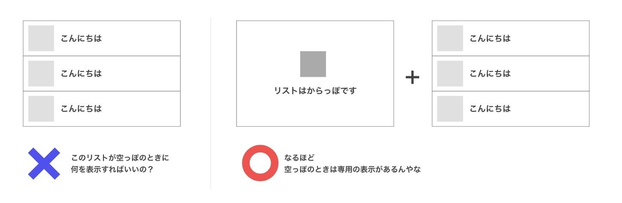リスト表示をする画面(例えばTODOリストアプリ)があったとして、表示する中身が何もない場合にはどうするかを決めてほしいです。