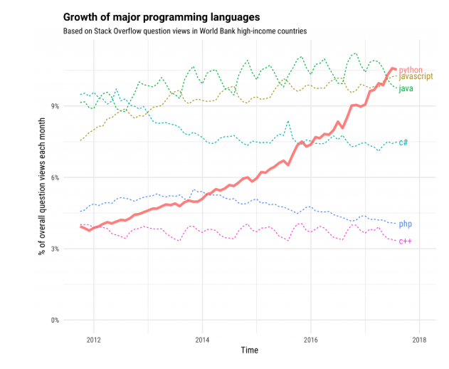 Pythonは他の言語より学びやすいこともあって、プログラミングの入門コースとして多くの大学で利用している言語です。また、機械学習の発達に伴い、Pythonの需要も段々と伸びています。