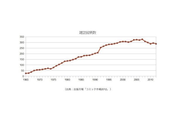 雑誌銘柄数を見てみると、2012年は288誌。