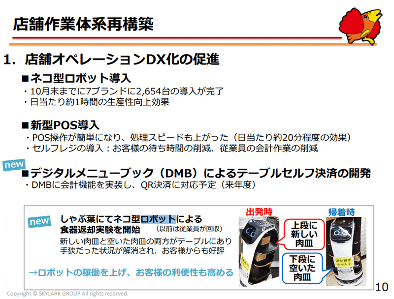 ちなみに、しゃぶ葉に関しては、「全店に導入済み(導入できない4店舗を除く)」となっており、予定通りやり切ったこともすごいですが、導入できないポイントを明確にできたということに価値がある気がします。